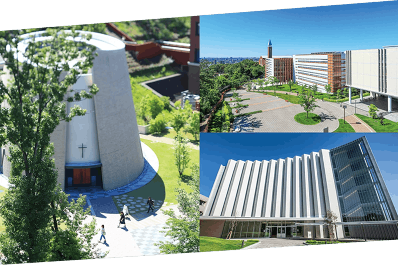 緑に囲まれ季節や自然を感じられ、まるで海外の大学のようなオシャレで綺麗なキャンパスが特徴です。また、充実した設備を整えた校舎が建ち並び、学生食堂やパウダールームも完備。学びと学生生活の充実を目指して、女性が過ごしやすい環境を追求しています。
