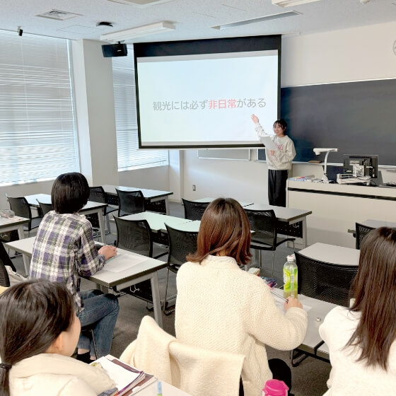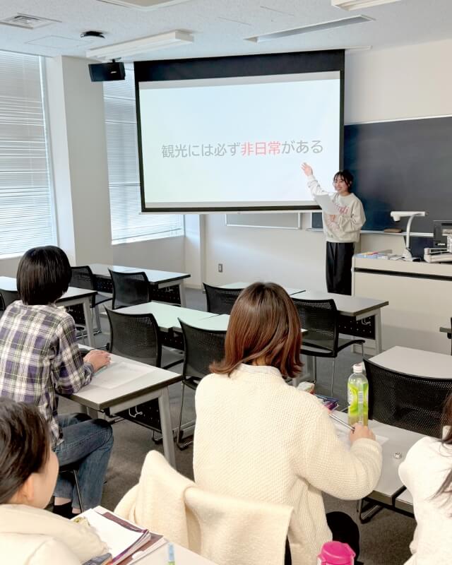 例えば、エアライン業界と観光業界両方への就職に関心がある人は、エアラインプログラムと観光プログラムを組み合わせる事も可能です。観光プログラムは、国内外の観光地や観光業務の基礎知識などを学びます。進路にまだ迷っている人も、様々な体験を通してじっくり考えることができます。
