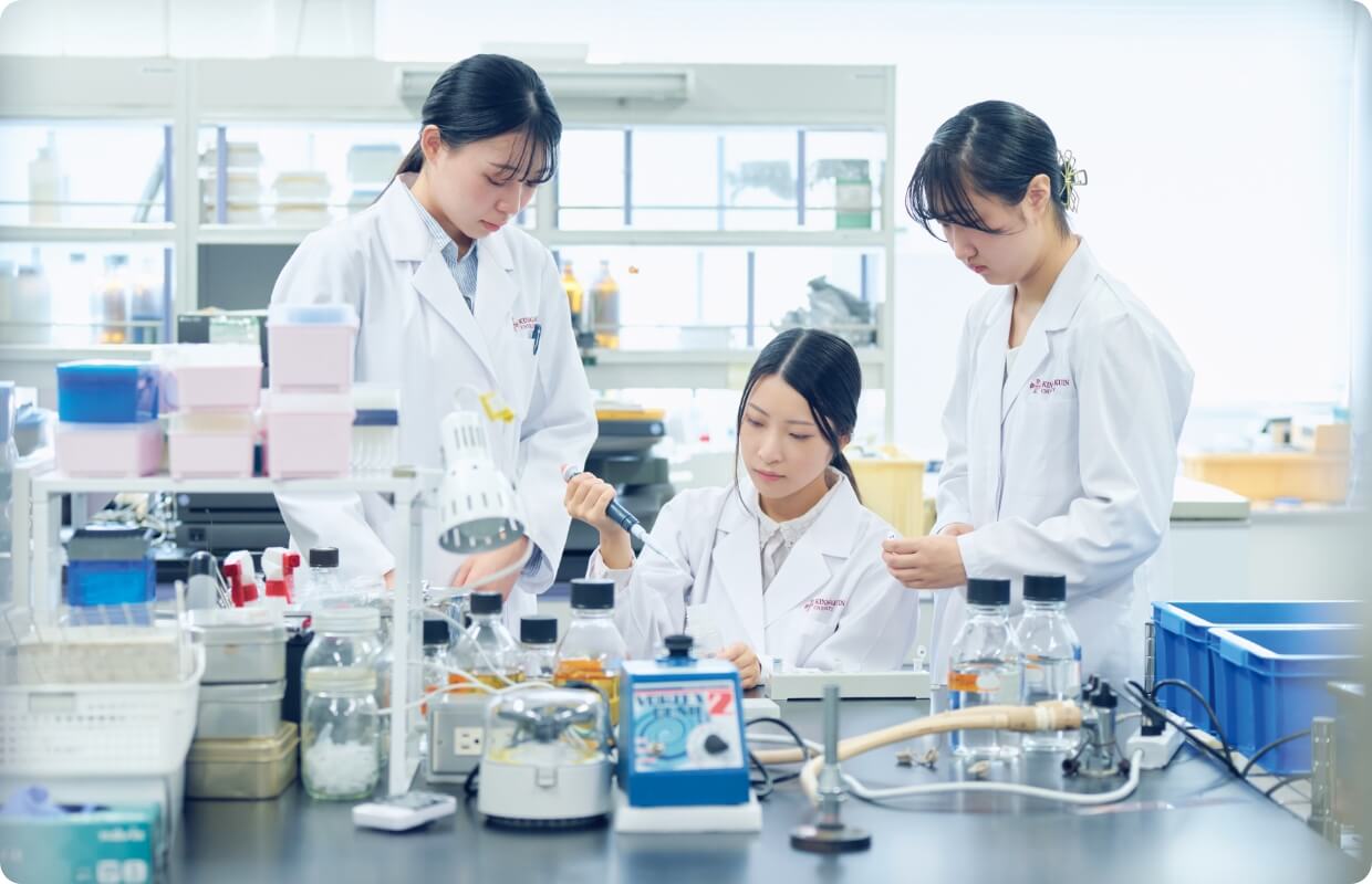 物理・化学・生物の基礎薬学と、薬剤師として大切な「こころの理解」なども学び、国家試験合格を目指します。
