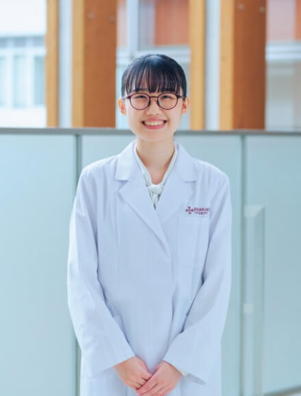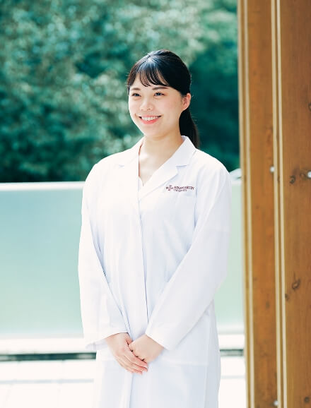 1年次の授業で「私の理想の薬剤師像」について話し合うグループ学習がありました。みんなと意見を交わす中で、漠然としていた将来像が鮮明になりました。私が目指したいと思ったのは、患者さんに寄り添える薬剤師。4年次までは目標に向けて専門知識や技能を磨いてきました。将来の目標がより鮮明になったのは、病院での実習がきっかけです。薬剤師の先生がかける言葉によって、悩みを相談する患者さんの表情が明るくなっていく様子を目にして、すごく素敵だと感じたのをよく覚えています。患者さんはもちろん、医療に関わる専門職の方々の信頼に応えられる薬剤師となるため、新しい知識を吸収し、コミュニケーション能力を磨き続けていきたいです。